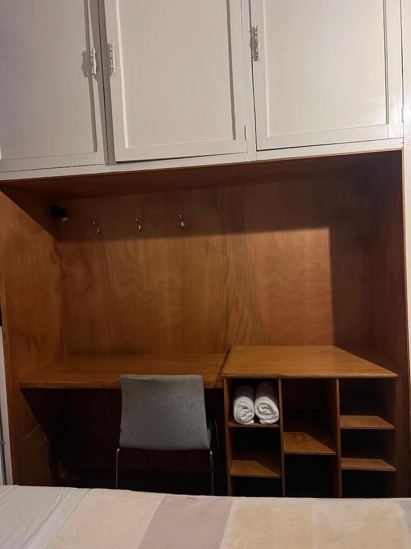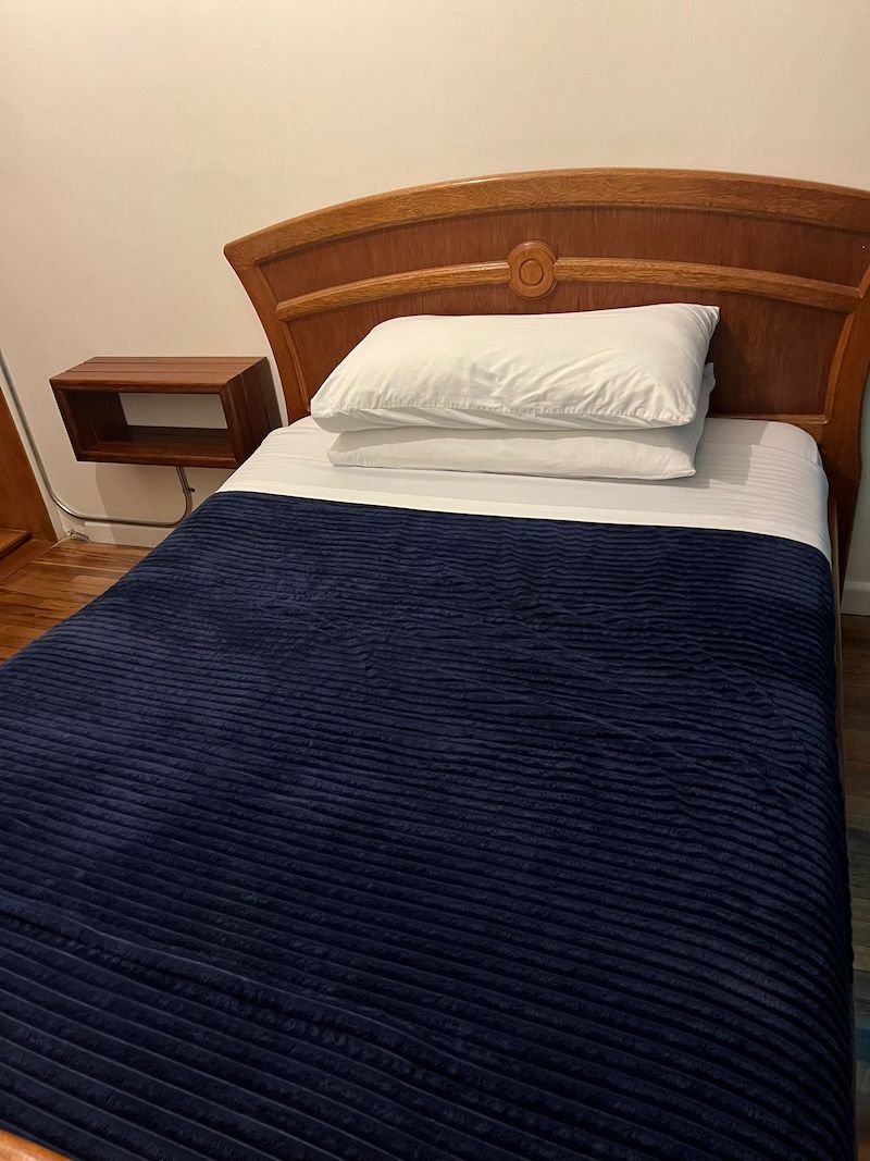 A quiet and cozy space designed for comfort and convenience. This room features a comfy Queen-sized bed, blackout curtains for uninterrupted rest, a practical desk, and smart storage solutions to keep your things organized. Perfect for travelers seeking privacy, relaxation, and a great night’s sleep.